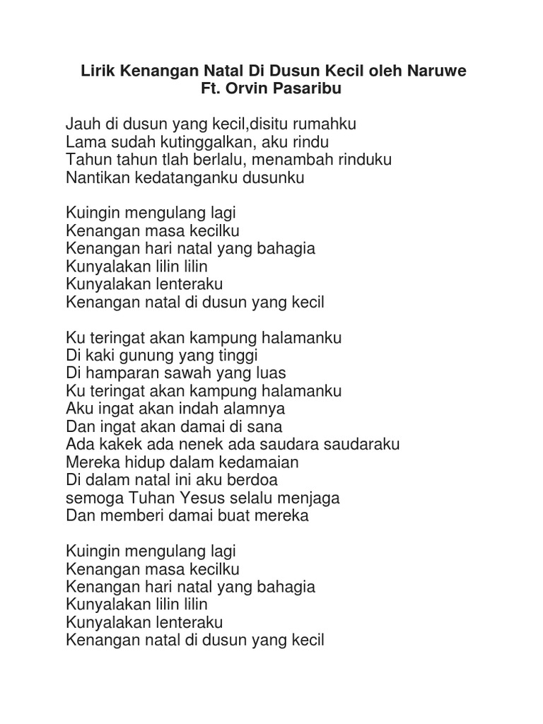 Lirik Kenangan Natal Di Dusun Kecil Oleh Naruwe Ft Pdf
